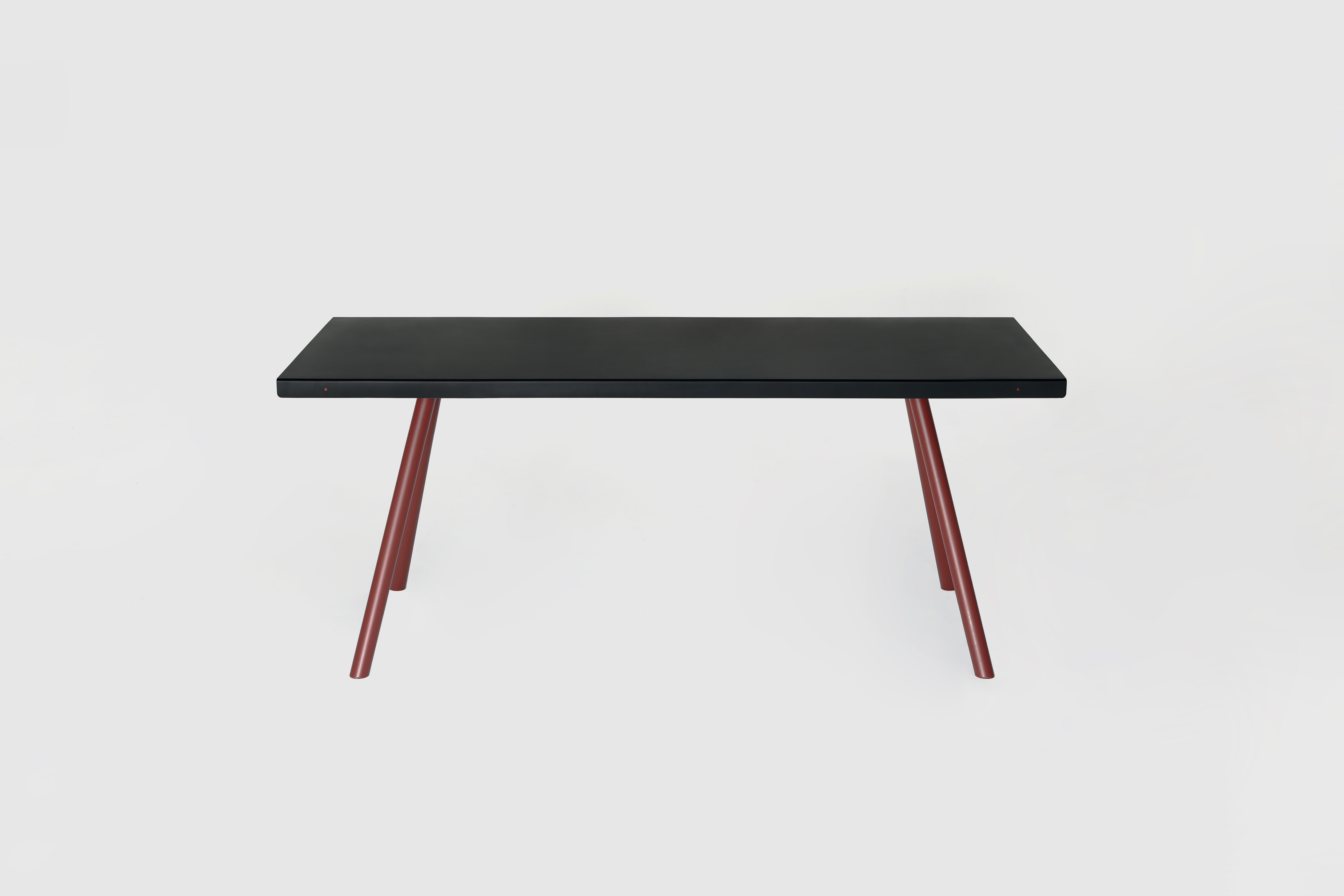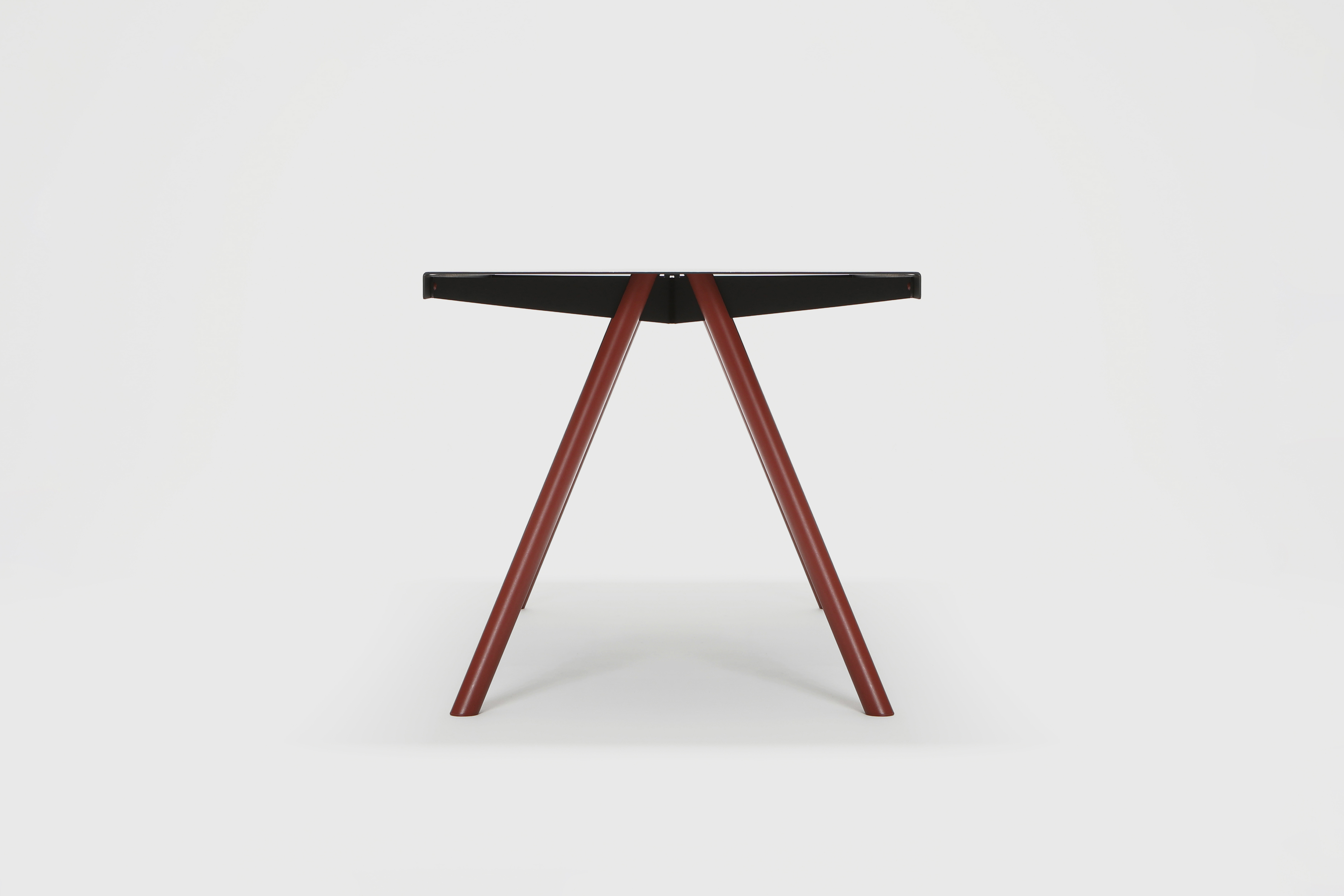 A table made from folded aluminium sheet and pipe that have a simplicity and constructional quality that directly relates to its stability. We used relatively common manufacturing methods-metal folding and simple milling. After a number of prototyping, we came up with this simple form through an effective and structural drawing. The ABP table has a aluminium folded table top and four milled aluminium pipe legs to give it certain lightness and at the same time highly stable quality. Appropriate locations of the four legs and folded metal sheet connectors under the tabletop helps spread the load on the table in a effective way.