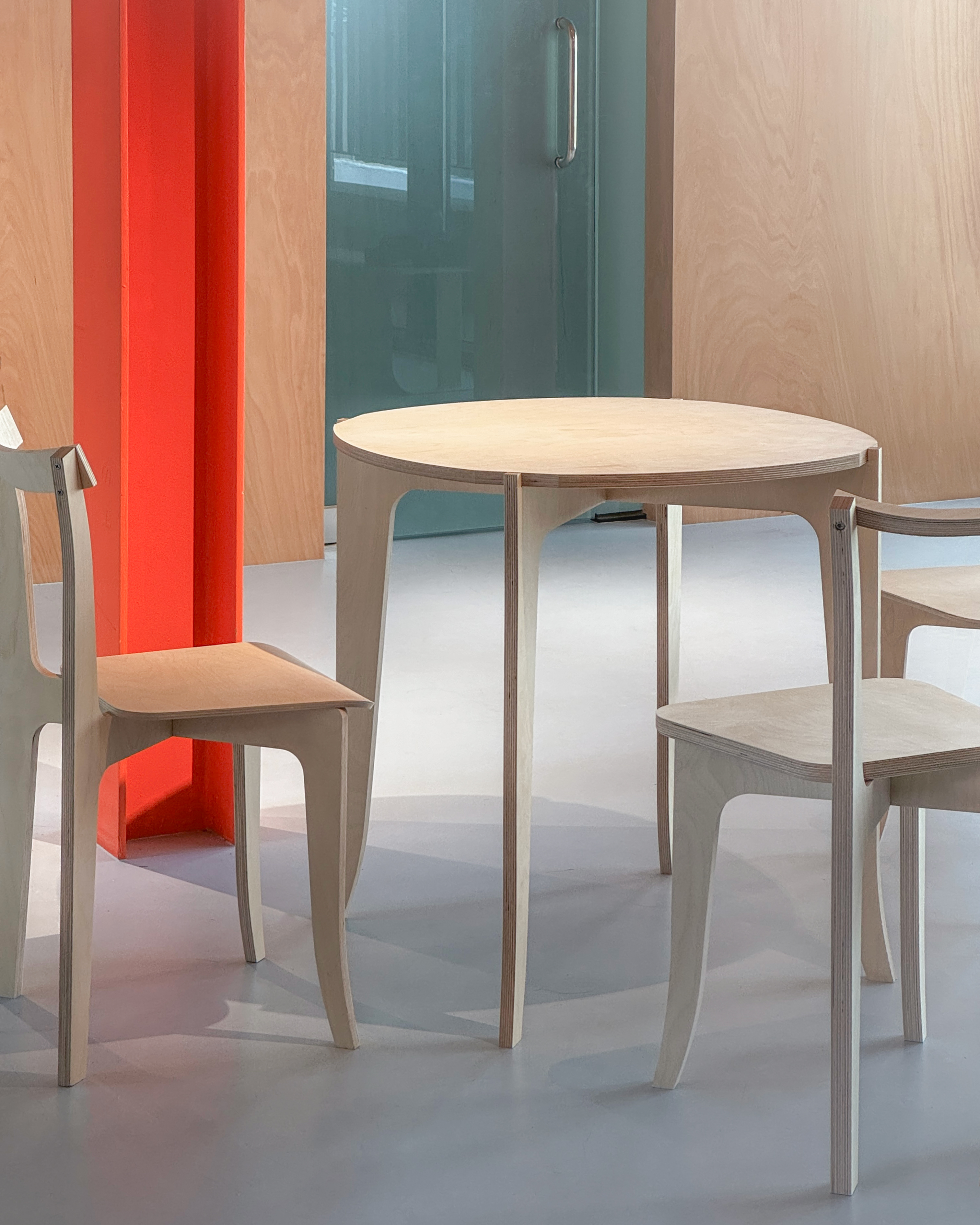 Easy Cut is a chair & table crafted during workshops without prior processes such as sketching or computer drawing.